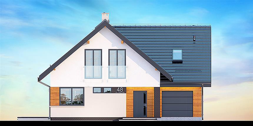 План дома "Осло" рассчитан на участок средней ширины. Дом имеет типичные размеры 10 х 12, поэтому его постройка обойдется не дорого. Проект относится к категории домов с выступом, направленным перпендикулярно дороге, что часто указывается в плане пространственного развития. Проект был создан для земельных участков, позволяющих отдельно стоящие здания. Проект может быть расположен на границе участка, что позволяет строить двухквартирные дома. Автор проекта предсказал наличие единственного гаража в линии строительства. Это также отличное предложение для людей, которые ищут дом с двускатной крышей, что снижает расходы. Проект "Осло" представляет собой одноэтажный дом с мансардой, благодаря которому мы можем наслаждаться большой площадью, даже на относительно небольшом участке. Сердцем дома является просторная дневная зона, в которой приятно проводить время вместе с близкими. Кроме того, просторная кладовая - полезная комната. Дневная зона также создает просторную гостиную со столовой, благодаря которой члены домохозяйства могут объединиться в одном месте. Камин, расположенный в гостиной, не только выглядит великолепно, но и обеспечивает приятное тепло в прохладные дни. Полностью функциональная ванная комната предусмотрена как на первом этаже, так и на чердаке, что является отличным решением для большего количества членов семьи. Спальная зона состоит из четырех комнат, Это отличный вариант для семьи из 4-6 человек. Пространство также может быть использовано в качестве комнаты для гостей или учебы. В доме также было место для практических хозяйственных помещений. Терраса является идеальным местом для организации семейных торжеств и минут отдыха.